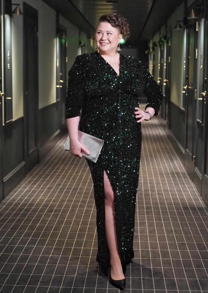 Vuokraa näyttävä syvän vihreä paljettinen iltapuku. Tämän upean iltapuvun kanssa on hyvä olla. Materiaali joustaa sekä iltapuvussa 3/4 hihat, joten et tarvitse huiveja tai jakkuja käsivarsille. Autamme mielellämme myös asusteiden kanssa jos on tarvetta.