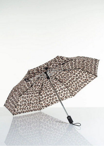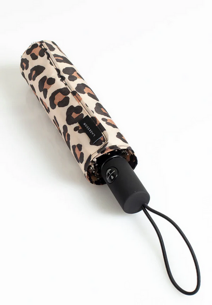 Tyylikäs ja rohkea Lasessorin pantterikuosinen sateenvarjo tuo sadepäiviin ripauksen asennetta ja eleganssia. Kokoontaitettava ja kevyt malli kulkee kätevästi mukana laukussa, ja automaattinen avausmekanismi tekee käytöstä sujuvaa yhdellä painalluksella.