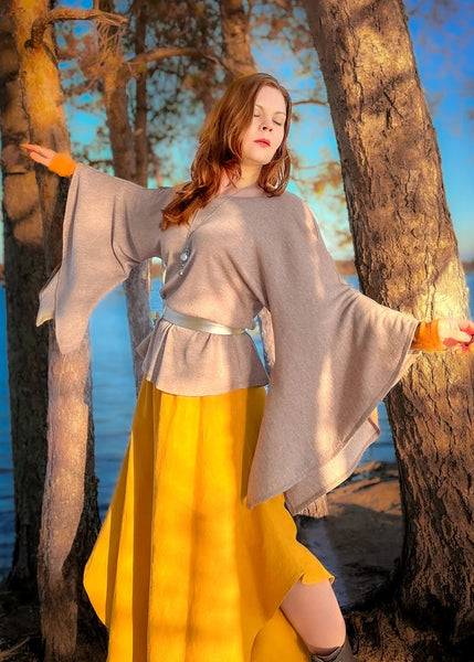 Upea ja dramaattinen silkkivilla paita leveillä ja näyttävillä hihoilla. Sinulle joka et pelkää näyttäviä vaatteita.